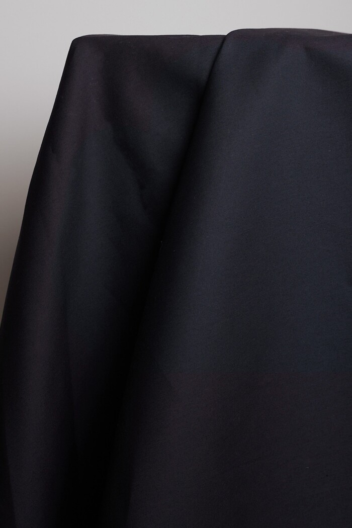 Un algodón diseñado para desafiar los caprichos del cielo. El algodón repelente al agua Atelier Brunette es un tejido con una caída densa y estructurada, tratado con un acabado técnico que le permite resistir lluvias ligeras.