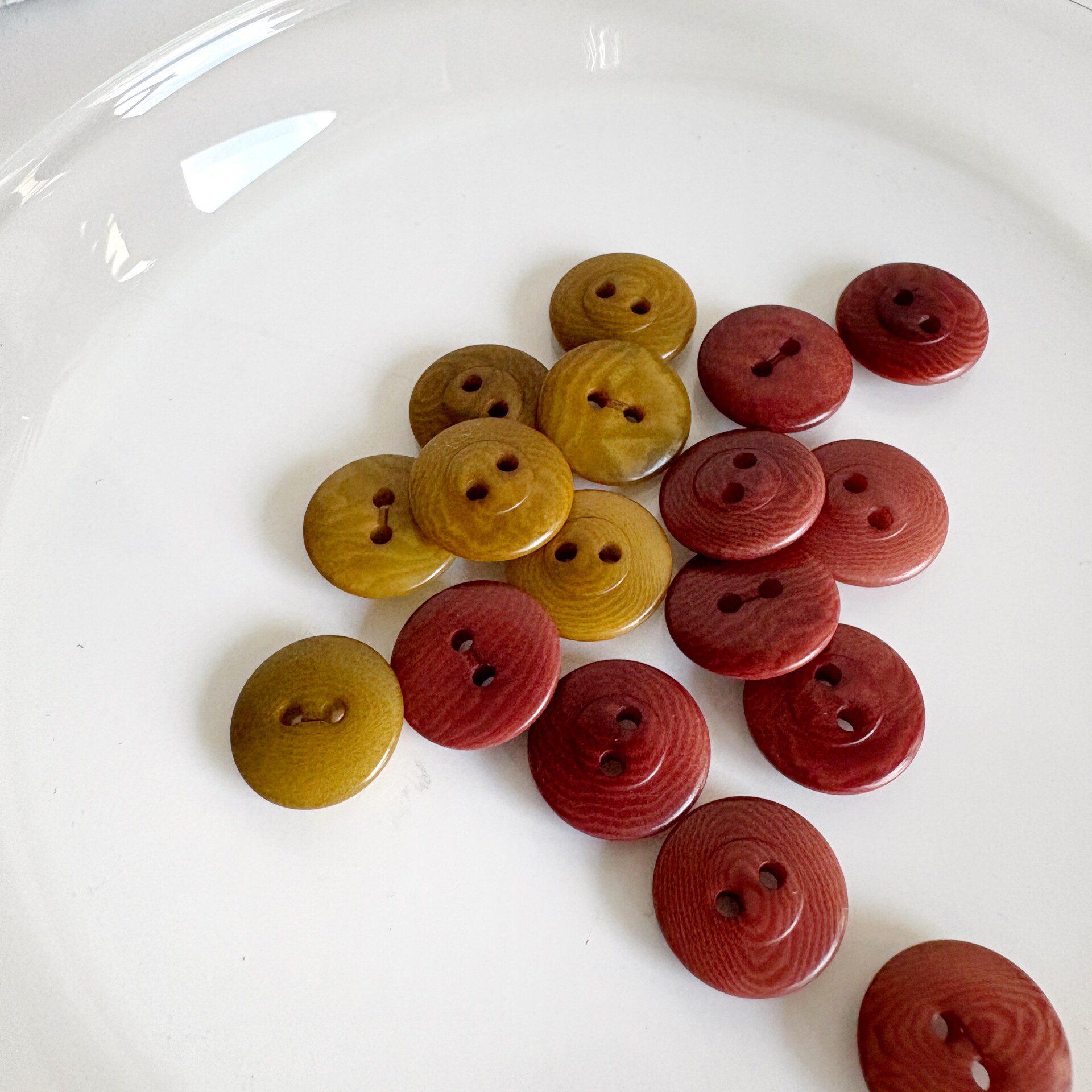 Botones de corozo con acabado de aguas. Coordinan a la perfección con los colores de la colección de Atelier Brunette.